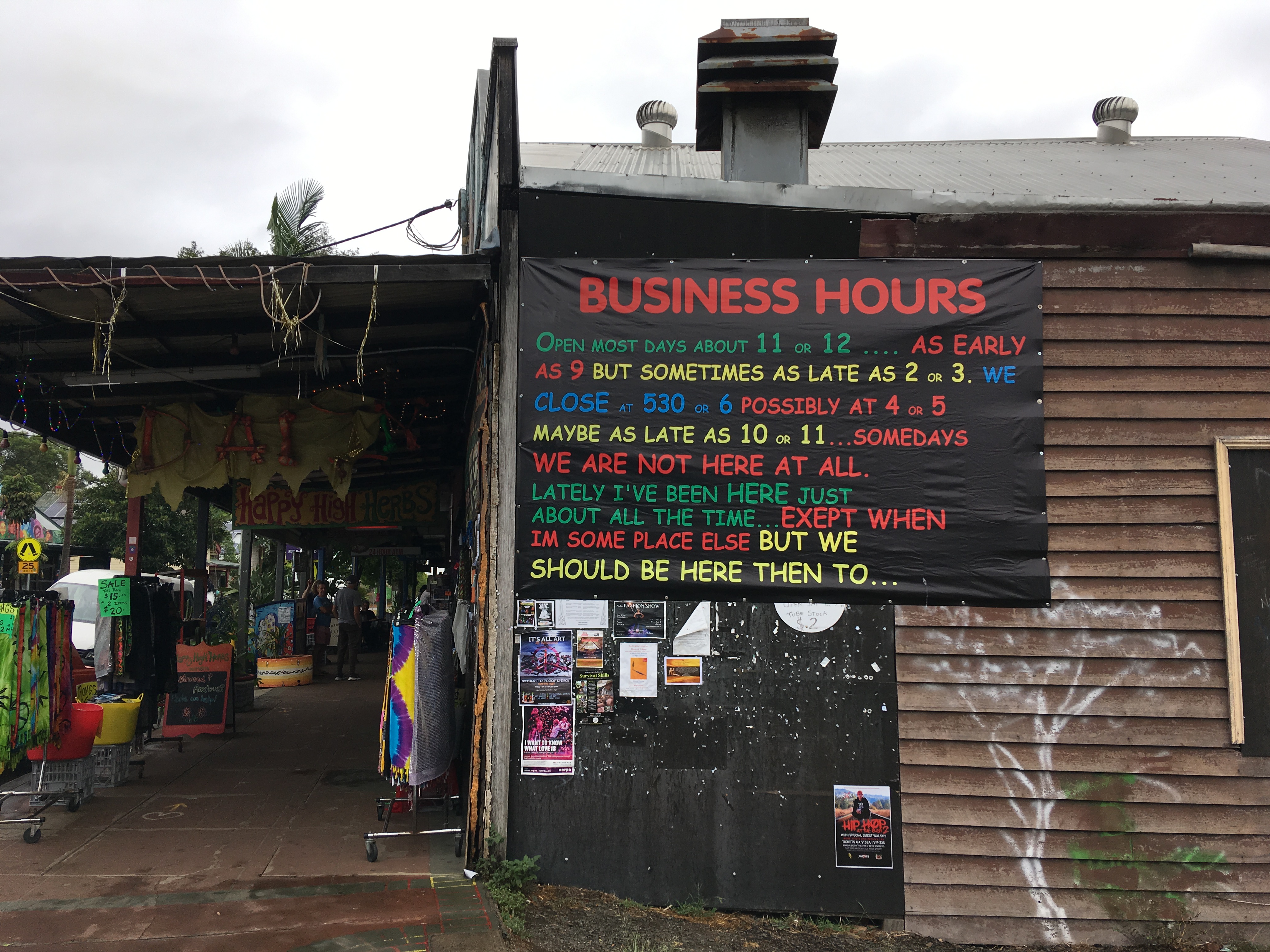 Our first day was cool and rainy which actually made for a nice comfortable change – typical though, as we could have done with that comfort in the camper! It did impact my to do list which was primarily hike and waterfall focused. Daniel’s Dad had told us about a documentary he’d watched recently about Nimbin – a small random pocket of Australia which is still stuck in the 60’s. It was only about a 40 minute drive from our cabin so for him, we decided to take a trip back in time. I’d heard of Nimbin before but I thought there would be more to it than just one main street full of hippie and new age shops, and perhaps naïvely I didn’t expect it to smell like being back in Amsterdam.