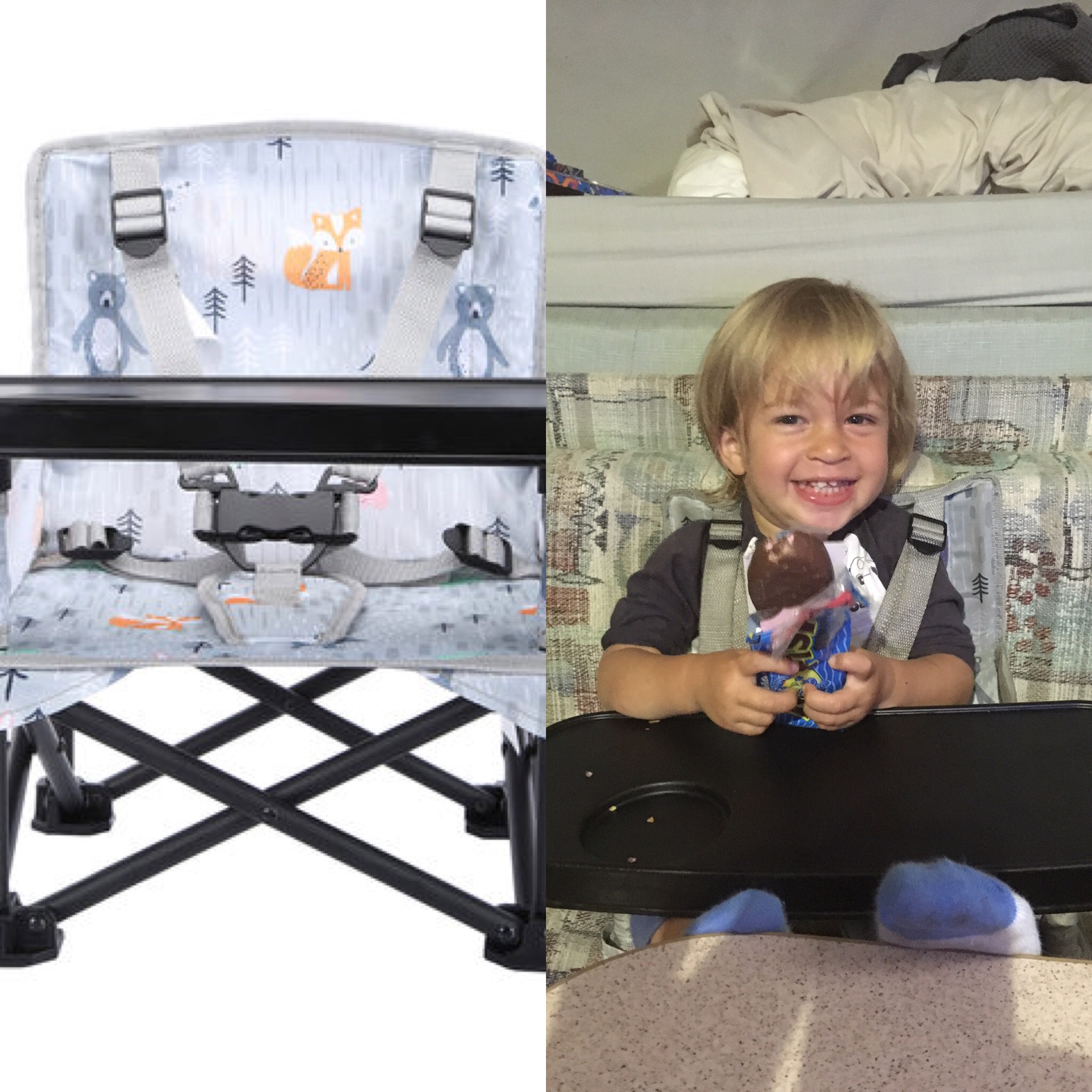 You know how you go into Kmart needing to pick up one small, cheap thing and end up with a receipt as long as your arm. Well this was one of those trips. This $30 gem of a product has been our biggest lifesaver. We didn’t have the space to bring his old highchair with us, but this completely folds up to barely anything. It’s a fantastic way to contain and occupy an active toddler. It’s Ryder’s eating table, his car racetrack, TV lounger, outdoor seat and activity table. It’s constantly covered in food but we just take it in the shower with us and it cleans up easily with a bit of soap – overnight and its dry. Just last week we went into Kmart to see if we could get another one just as a spare and there were no more left – Kmart if you are listening please stock more of this camp-lifesaving product!