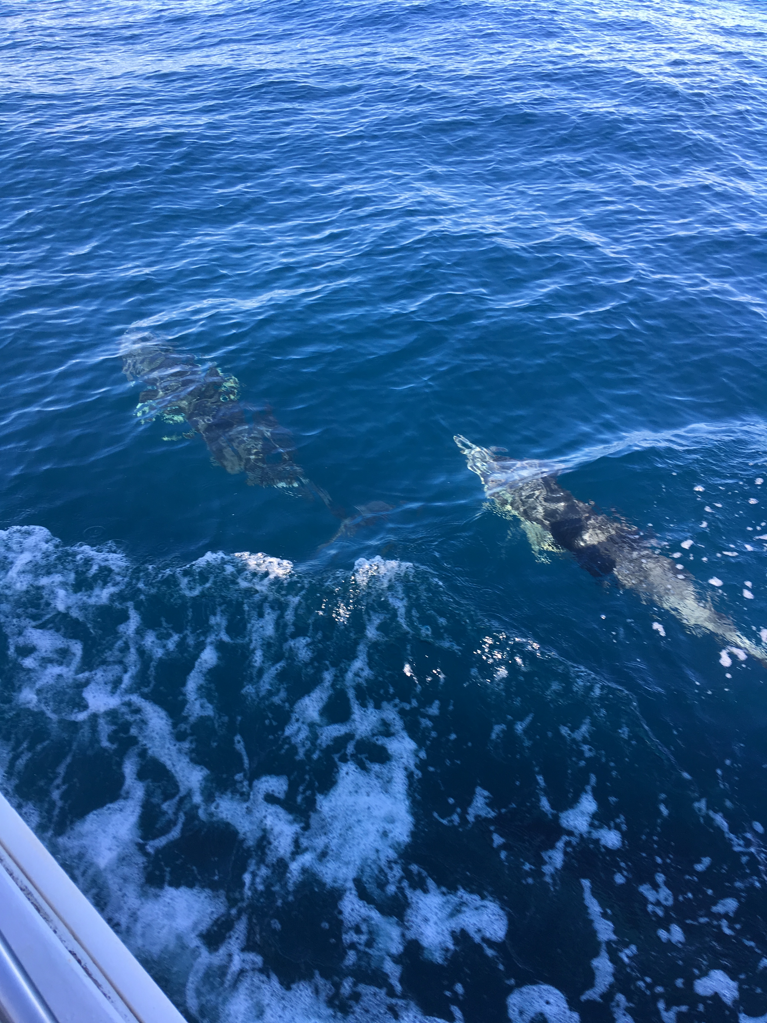 Finally on our last day in Narooma, we did the first paid tour attraction of our trip and the reason I wanted to stop in Narooma in the first place – snorkeling with seals. There are a few companies in the area which do similar tours but we went with Narooma Charters. In the 25-minute boat ride to Montague Island we were lucky enough to come across a “school” of dolphins (still not using it right Kaia but getting closer). The pod of about 12 dolphins were so close you could almost touch them playing in the wake of the boat.